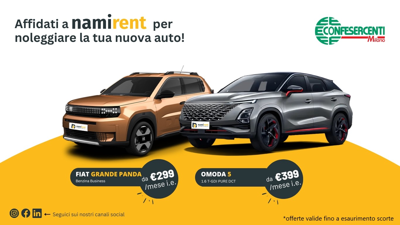 Confesercenti Milano e NamiRent collaborano per offrire vantaggi speciali agli Associati di Confesercenti nel settore del noleggio auto a lungo termine.